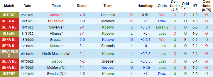 + Thống kê 10 trận gần nhất của Kosovo