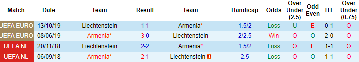Phong độ và thống kê đối đầu Liechtenstein vs Armenia