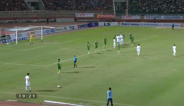 Phút 18: KHÔNG ĐƯỢC!!! Công Phượng đi bóng tốc độ rồi tung cú sửa lòng chân phải, bóng đập chân hậu vệ chủ nhà đi hết đường biên ngang.