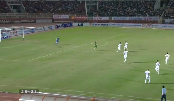 Phút 44: KHÔNG ĐƯỢC!!! Xuân Trường sút phạt kỹ thuật từ khoảng cách khoảng 30 nhưng thủ môn Văn phong đã chơi tập trung, đấm bóng giải nguy.